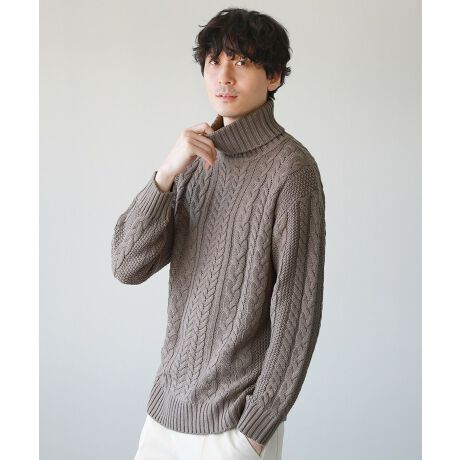 セミワイドシルエットケーブル編みタートルネックニット