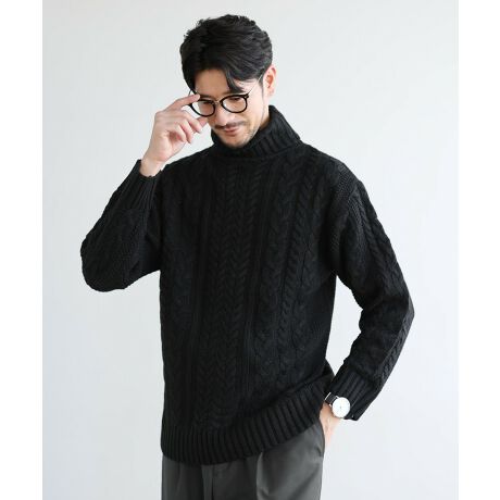 セミワイドシルエットケーブル編みタートルネックニット