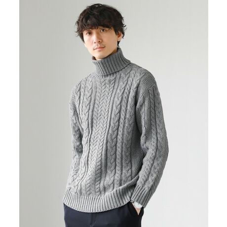 セミワイドシルエットケーブル編みタートルネックニット