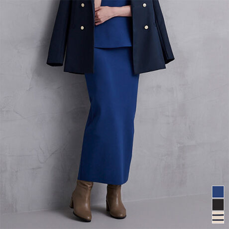 タイトなIラインシルエットでスタイルアップを叶えるニットシガレットスカート。