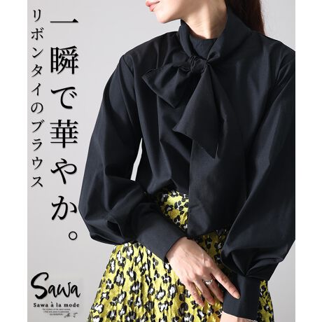 【ブラウス】一瞬にして華やかリボンタイのブラウス シャツ ブラウス レディース 長袖 りぼん 黒