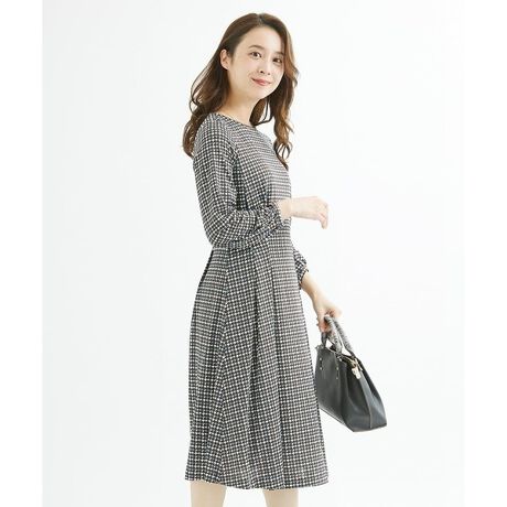 ブランド定番人気のジャージープリントワンピース。クラシカルな千鳥プリントをアレンジした柄は落ち着いた印象に。ウエストタックでフィット&フレアーのきれいなシルエットが特徴。