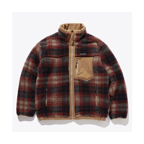 ボアフリース×ストレッチウーブンを組み合わせたリバーシブル仕様のフリースジャケット。\nジャガード編みのチェック柄でお洒落に仕上げたフリース面は、適度な保温力と快適な着心地が特徴です。\n4方向に伸縮する優れたストレッチ性をもつポリエステルウーブン生地で仕上げた裏面は、防風性と通気性を両立した、防風透湿機能「オムニウィンドブロック」と雨や汚れを弾く、はっ水(撥水)機能「オムニシールド」を搭載しているため、寒い時季のキャンプやハイキングなどにも最適です。トレンド感のあるゆったりとしたリラックスフィットで厚手のインナーとも合わせやすく、フロントファスナーを締めるとスタンドネックが、首元をしっかりと温めてくれます。\n用途や気分に合わせて、2wayの着こなしを可能にしたデザインは、アウトドアシーンやタウンユースなど様々なシーンで重宝します。\n\n【特徴】\n・リバーシブル仕様\n・適度な保温力と快適な着心地が特徴のフリース素材(表面)\n・お洒落なジャガード織りのチェック柄(表面)\n・4wayストレッチ素材のポリエステル素材(裏面)\n・コロンビア独自の防風透湿機能オムニウィンドブロック(裏面)\n・コロンビア独自のはっ水(撥水)機能「オムニシールド」(裏面)\n・リラックスフィット\n・スタンドネック仕様\n・アウトドアシーンやタウンユースなど様々なシーンで活躍
