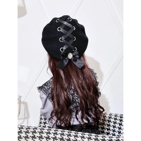 編み上げのサテンリボンがキュートなベレー帽。