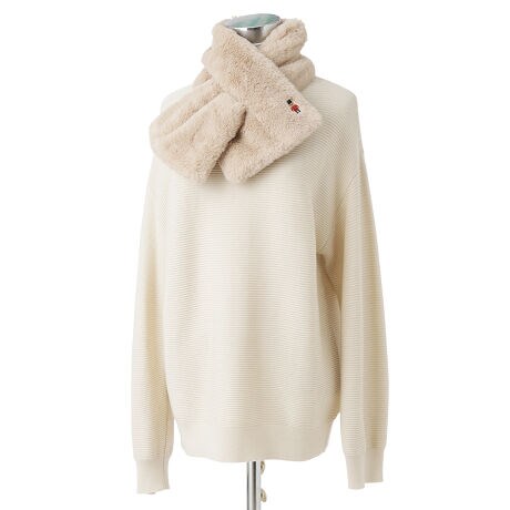 かわいいベアのワッペンが付いたフェイクファーマフラーです。
