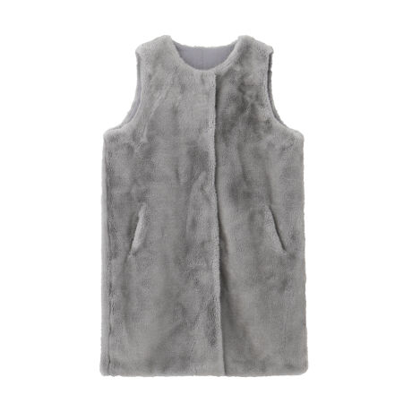 ミンク風フェイクファーロングジレ/ポケット付き