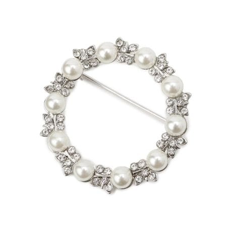 スーツやワンピースを華やかに彩るフェイクパールとビジューのブローチ。