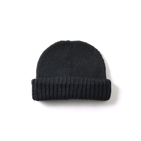 ホールガーメント(靴下などのように継ぎ目無く筒状に編み立てるニッティング技法)編み機によって編み立てたショートワッチキャップ。締め付けが少なく、快適な被り心地が魅力です。