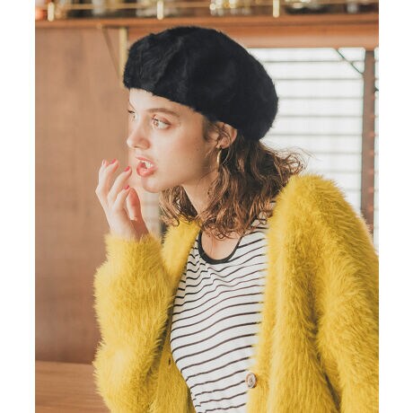 フェイクファー ベレー帽