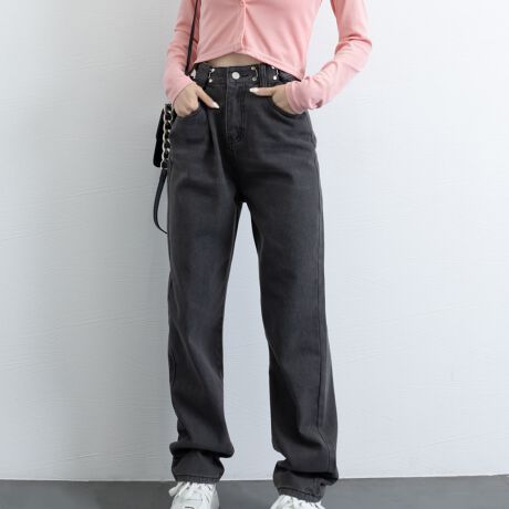 すらりとしたシルエットで脚を長く見せるハイウエストデニムワイドパンツ