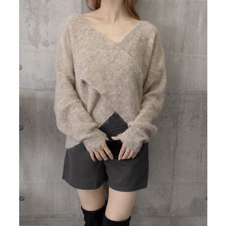 クロスに重なったデザインが主役級なカシュクールニットトップス