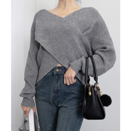 クロスに重なったデザインが主役級なカシュクールニットトップス
