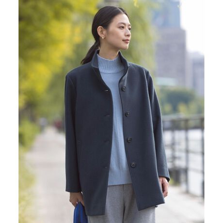 オンオフ兼用!インナーを選ばず着回せる、滑らかな風合いのスタンドカラーコート