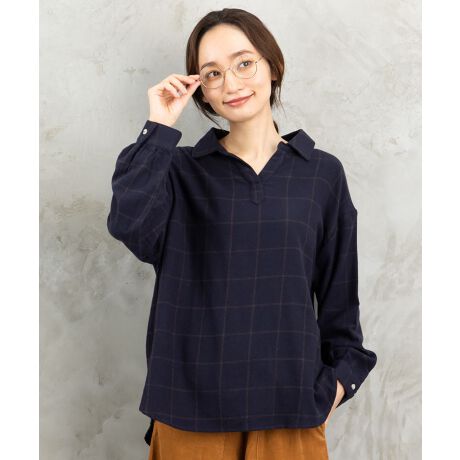 【大きいサイズ】 21号 ソフトサーモスタンドスキッパーチェックシャツ
