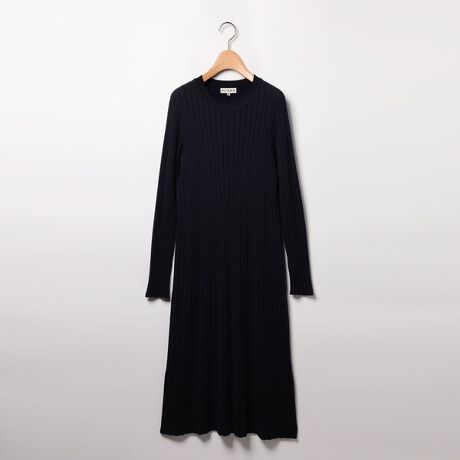 100%ウール素材で仕立てた、秋冬シーズンにぴったりな暖かな肌触りの長袖ロング丈ワンピース。引き続きトレンドのリブ編みで、適度に身体にフィットし、すっきりとした縦ラインのシルエットで着こなせます。少しフレアな裾がフェミになムード。一枚でスタイリッシュな着こなしが完成する便利なアイテムです。