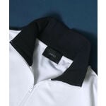 レトロな雰囲気漂う両袖のラインと配色リブのデザインが旬な古着風のスタイリングを作り出すトレンド性の高いアイテム。