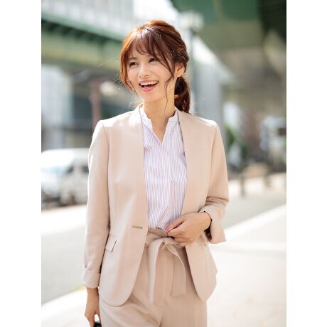 ・シンプルでマニッシュな衿なしデザインはお仕事スタイルに新しい印象を出してくれる定番アイテム。