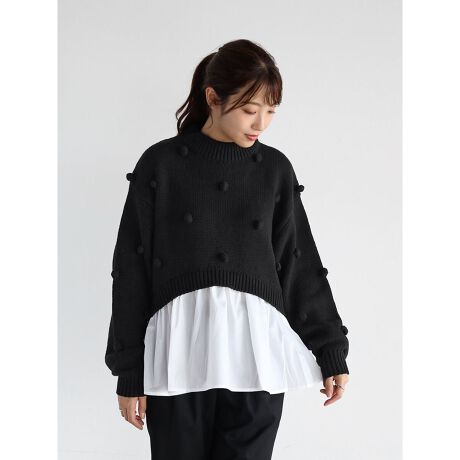 ポンポンデザインが目を惹く、大人可愛いレイヤード風アイテム。