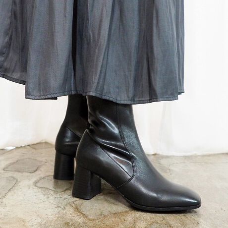 前半分には張りを持たせているのでシルエットが崩れにくく、きれいに履きこなせます。シンプルでコーデに合わせやすい万能ブーツです。