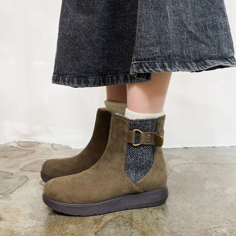 byあしながおじさんで毎年人気のファーブーツ。今年はヘリンボーンツイードを使った、シックで温かみのある素材コンビでの展開です。