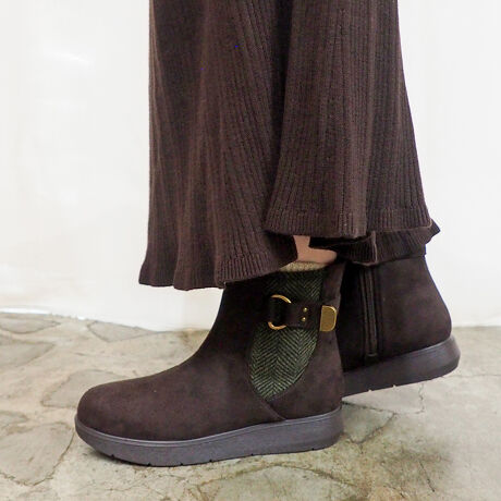 byあしながおじさんで毎年人気のファーブーツ。今年はヘリンボーンツイードを使った、シックで温かみのある素材コンビでの展開です。