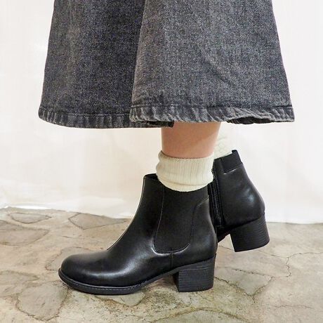 普段使いしやすいシンプルなサイドゴアブーツ。少し“ヒール感”のあるデザインで、カジュアルにもきれいめにも履ける便利なアイテムです。
