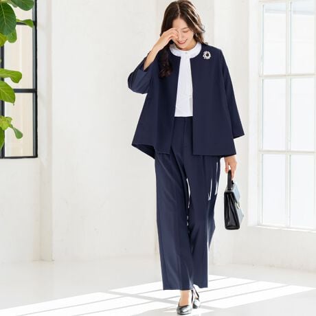 フォーマルシーンはもちろんデイリー使いにも着まわせるセットアップ。