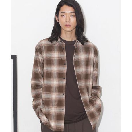 トレンド感のあるオンブレーチェック柄のオーバーシャツ。