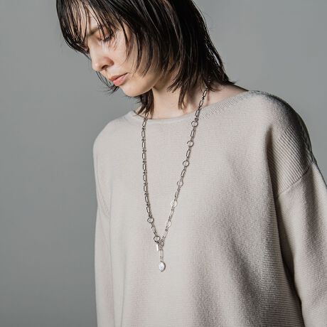 シャープな印象のスクエアチェーンを用いたラリアットデザインネックレス。