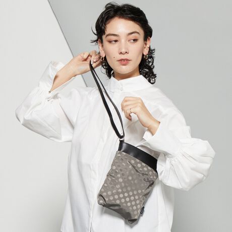一般的な長財布(H9.5cm×W19cm×D2.5cm)が縦向きに収まるサイズ感で、荷物が少ないお出かけや、サブバッグとして旅行時にご使用いただくのもおすすめです。