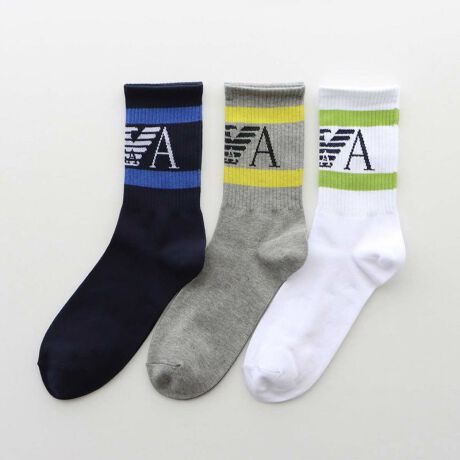 EMPORIO ARMANI 3足組 メンズ ストライプ イーグル リブ ショート丈 ソックス