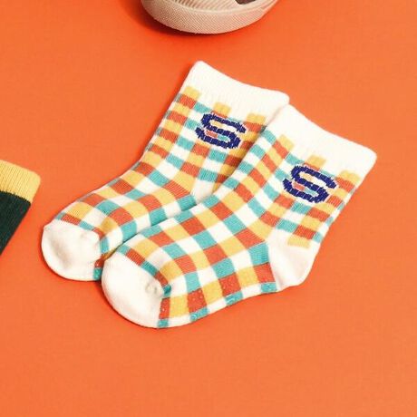 apres les cours(アプレレクール)のタイツ・ソックス「アルファベットソックス」は、足元からおしゃれになれるデザイン。おようふくとのスタイリングも楽しんで。