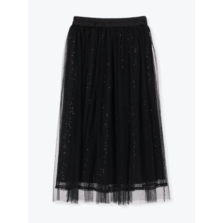 チュール×スパンコールで装いを華やかに演出するロングスカート。