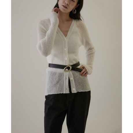 【ふわふわとしたモヘア素材にシアー感をプラスした着るだけで印象的なVネックモヘアカーディガン】