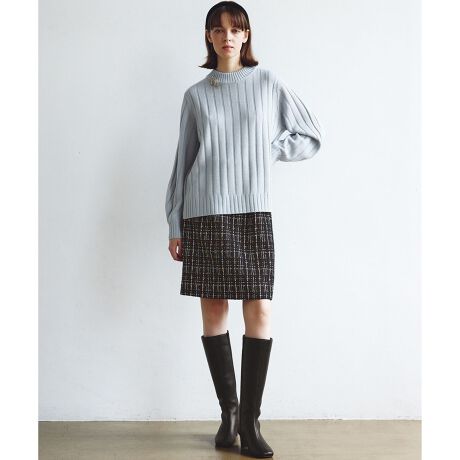 ■素材同じデザインを異なる素材で展開することで全く違った印象に仕立てたスカートです。色合わせがしやすく、スタイリングがしやすい点も魅力です。≪005≫18種類の意匠糸を使用してリッチなファンシーツイードを表現。意匠糸をふんだんに使った凹凸感と立体感のある表情、奥行きのある色のコントラストが魅力です。≪905≫カラフルでキャンディのようなキュートなカラーの綿を白糸に撚って入れ込んだこだわりのファンシーチェックツイードです。数種類の意匠糸を使い凹凸感を出した特別なツイードで、使いやすい生地の厚さ、奥行きのある色のコントラストが魅力です。キャッチーな色づかいながら上品さも兼ね備えています。