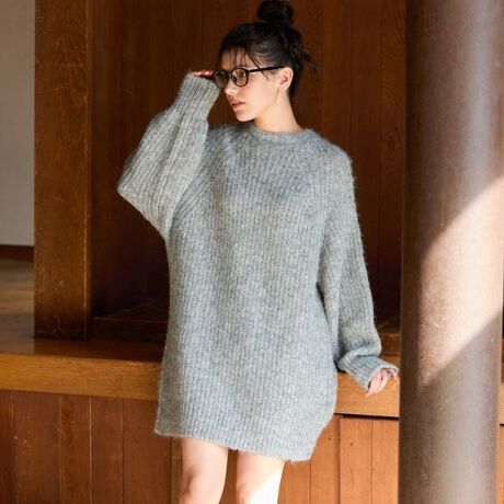 ラグランルーズ畦ニットミニワンピース