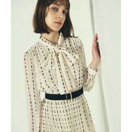 スカートにはプリーツテクニックを施しウエストにはベルトをトッピングして、自然とメリハリを叶える一枚に仕上げました。