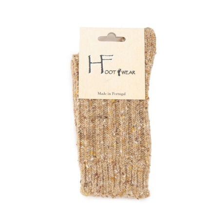 太めの柔らかいウール混の糸で編まれたソックスは、厚手で伸縮性があり、包み込まれるような履き心地です。