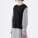 コーディネートのアクセントとして大人気のジレですが、衿元をすっきりとしたクルーネックでシンプルに作ることで、どんなアイテムともレイヤードしやすいように仕上げています。