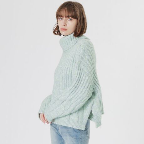 ケーブルコンビタートルニット