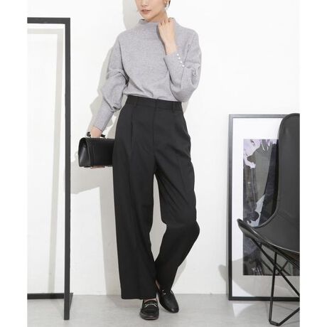 程よくハイウエストのすっきりとしたシルエットに拘ったセンタープレスパンツ。ウェストタックのきれいな縦落ちしているシルエットで、トップスをインしてもきれいに着こなせるデザイン。ブラウスにジャケットを合わせてオフィスカジュアルや、ロンTでラフなスタイルなど、幅広い着こなしを楽しめます。