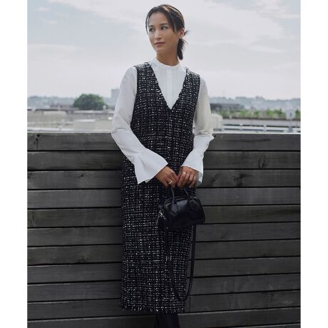 レイヤードスタイルで着回し力抜群、セレモニーにも使えるツイードワンピース