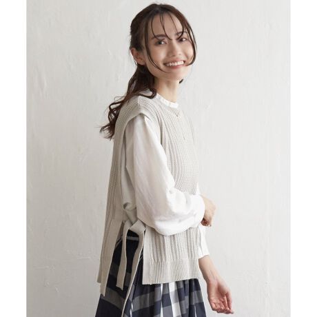ikkaで毎年人気の、サイドリボンが大人可愛いニットベストです。
