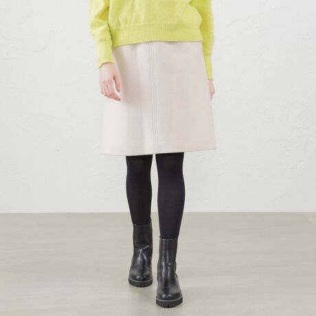 張り感のあるメルトン素材を使用しているため、シンプルながらもフォルムがきれいなスカートです。ボディラインを拾いにくいシルエットで気負わず着用できるのが魅力です。