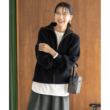 【洗濯機可】ジップアップニットブルゾン