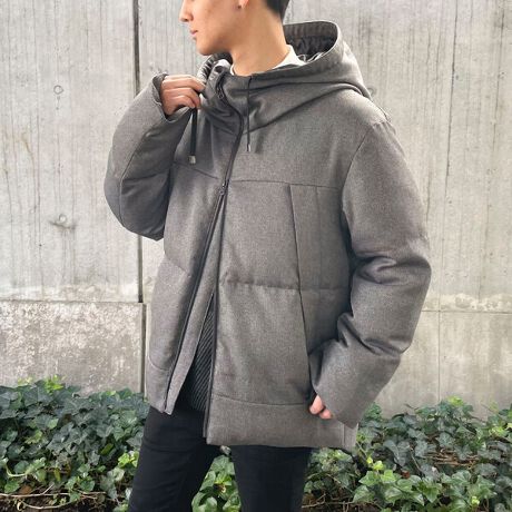 程よく肩を落としたドロップショルダーの身巾にゆとりを持たせたシルエットのダウンです。