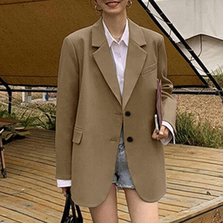 シングルブレストがアクセントになっており、洗練されたスタイルを演出する韓国っぽテーラードジャケット
