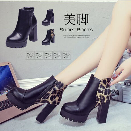 ベーシックなデザインが人気の秘密、サイドファスナー付きチャンキーヒールブーツ