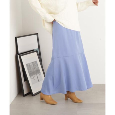 [型番:1663220151]裾まわりの揺れ感がフェミニンな印象のマーメイドスカート。ウエストラインから腰まわりをすっきり見せ、裾の途中で切り替えを入れた、ストンと落ち感のあるマーメイドラインを演出します。ウエストの後ろはフィット感のあるゴム入りで、左脇のファスナーで着脱できる仕様。ゆるっとしたニット合わせから、コンパクトニットをインして着るのもお勧めです。無地のブラックとブルーカラーに加えて、崩したようなドット柄のオフカラーの3色を揃えています。