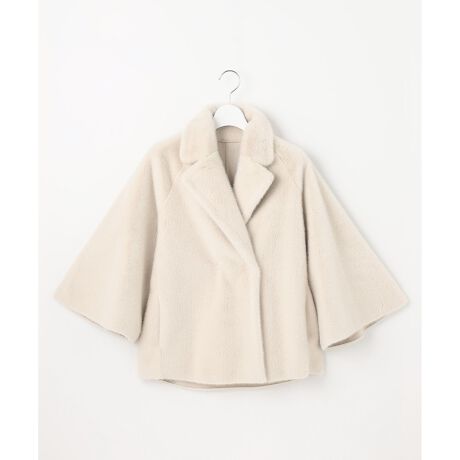 リュクス感のあるエコミンクショートコート■デザイン柔らかな肌触りのエコミンクファーコートです。フレアースリーブのショート丈で、程よくゆとりをもたせたリラックスシルエットです。大きめの衿は、お顔周りをより華やかに見せてくれます。羽織るだけでリッチなスタイルを楽しんで頂けます。■素材綿毛と刺毛で出来ているボアはリアルミンクのように仕上げました。繊細な刺毛が空気を含み、柔らかい肌触りのエコミンクファーに仕上げています。軽やかですが、防寒性があります。■同素材アイテムフード付きストール(ZZ2VSW0406)